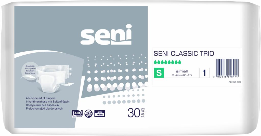 Une gamme complète qui répond à toutes les incontinences : • L’incontinence légère avec les SENI Control pour les femmes et SENI Man pour les hommes • Les protections anatomiques avec SAN SENI • L’incontinence modérée à forte avec les pull up SENI ACTIVE ou les changes complets SENI CLASSIC TRIO • Et les protections avec les alèses SENI SOFT